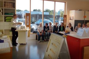 Desweiteren demonstrierte ein Mitarbeiter der Firma RELAX Bettsysteme über Voraussetzungen für guten Schlaf. Die präsentierten Musterbetten veranschaulichen bis ins Detail die Besonderheiten und Vorzüge dieser Bettsysteme.